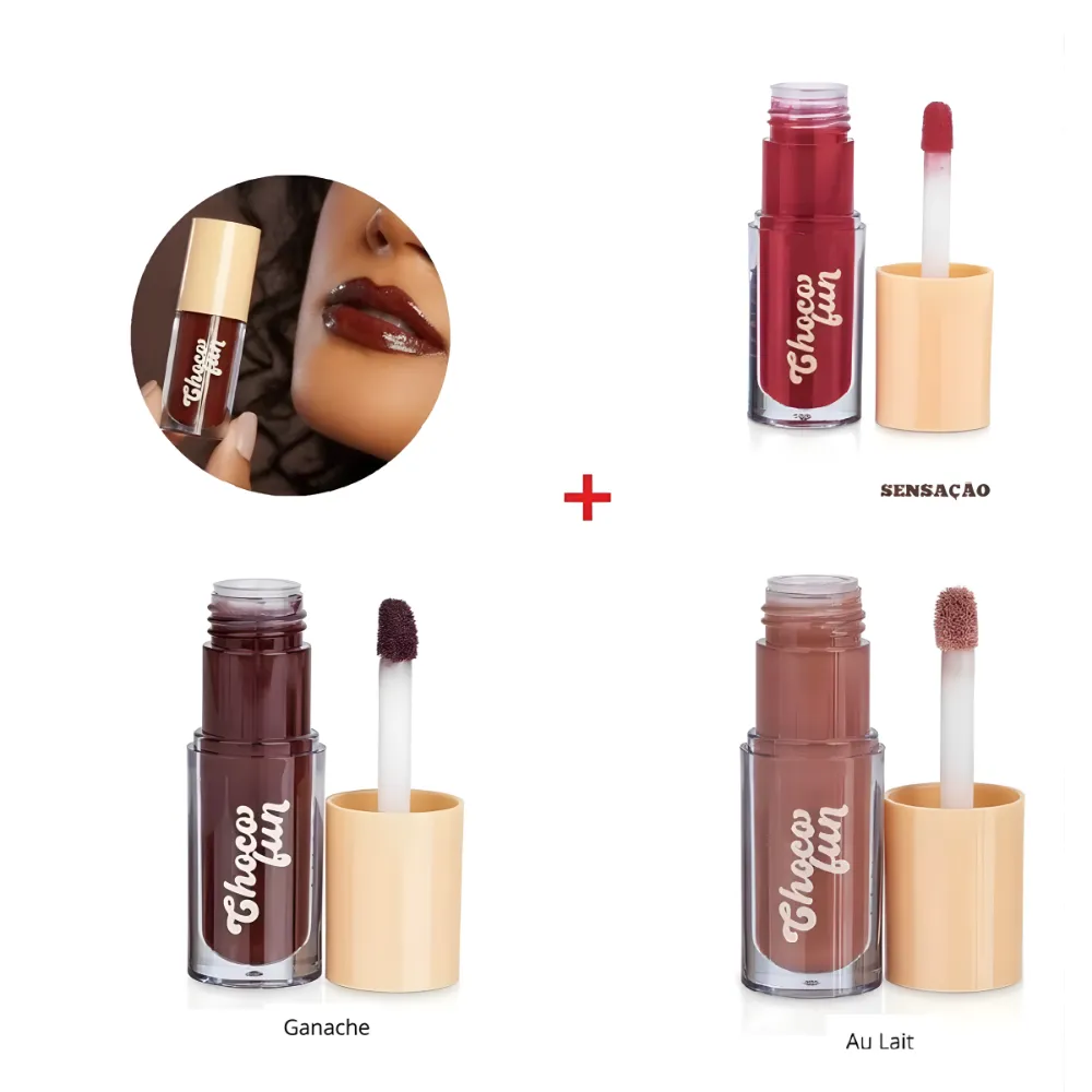 Dica LiceLice: Para transformar o seu batom Choco Fun em um acabamento brilhante, aplique uma camada do nosso Lip Oil Candy por cima. O resultado é um visual "chocolate glaze" super moderno e hidratante!